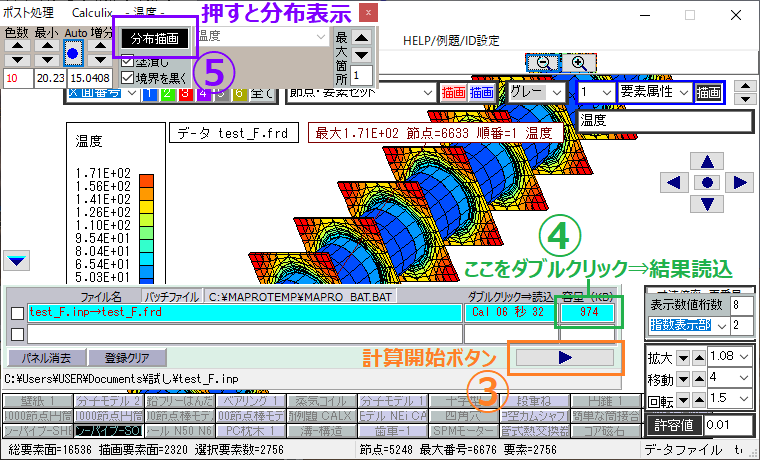 【モデル構築&計算】 保存後、計算パネルが表示されます。ボタンを押すと計算実行。下記状態になります。 |